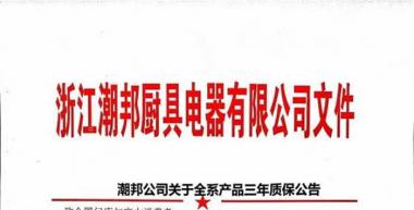 近日,浙江潮邦廚具電器有限公司推出一項全新服務(wù)政策,即自2021年5月6日起,用戶在線上、線下渠道購買的潮邦集成灶將享受整機(jī)質(zhì)保三年,保