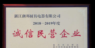 近日,浙江潮邦廚具電器有限公司獲得浙江省嘉興市2018~2019年度誠信民營企業(yè)、海寧市2019年度誠信民營企業(yè)榮譽(yù)證書。 獲此殊榮