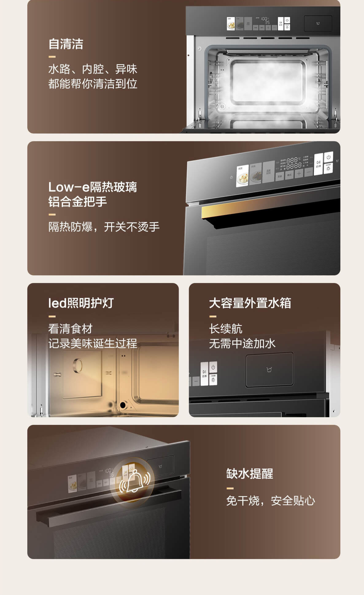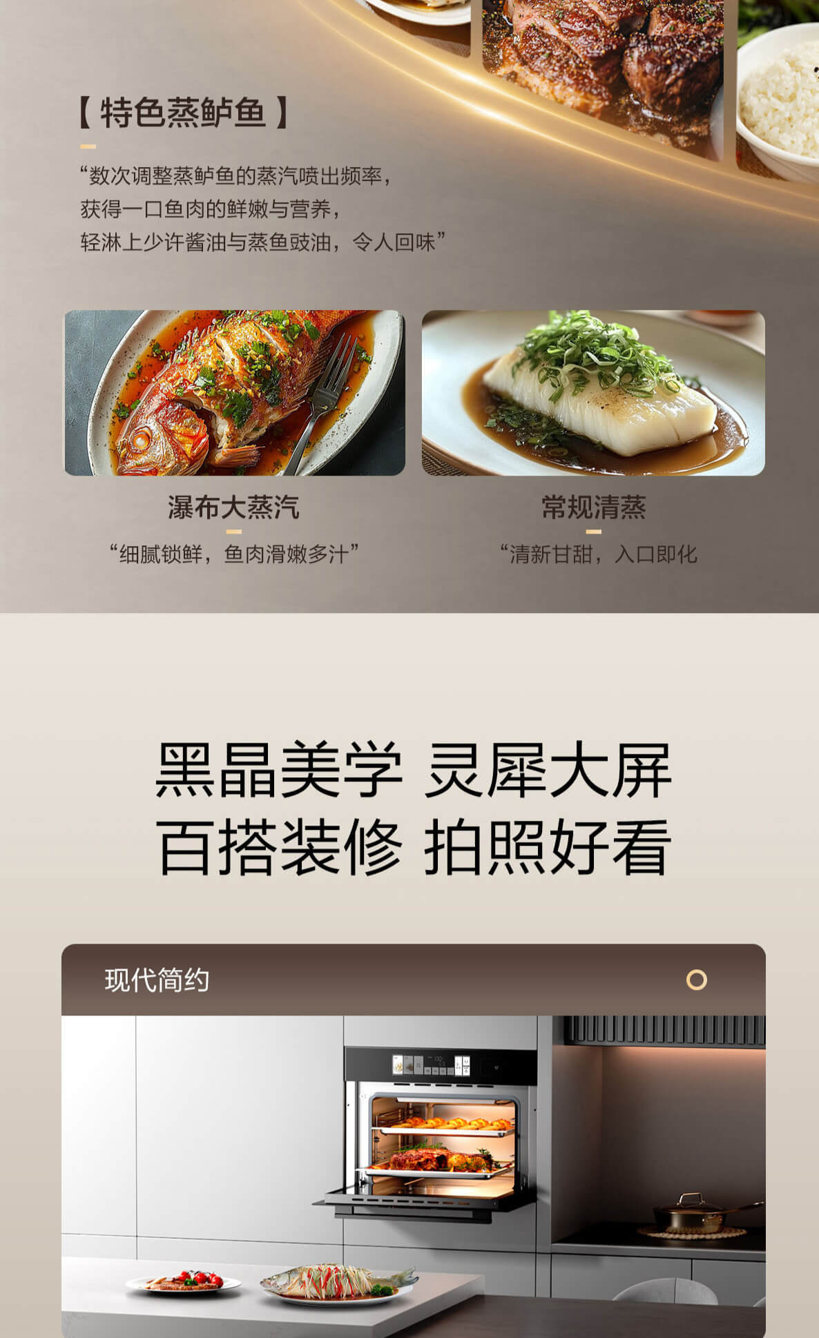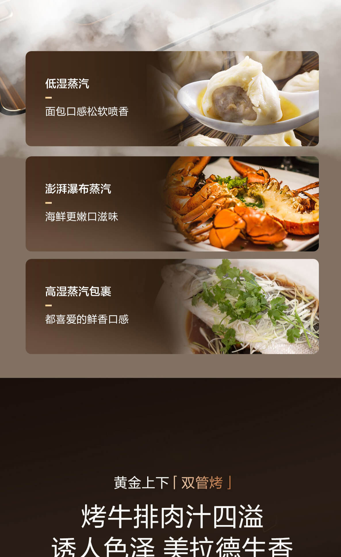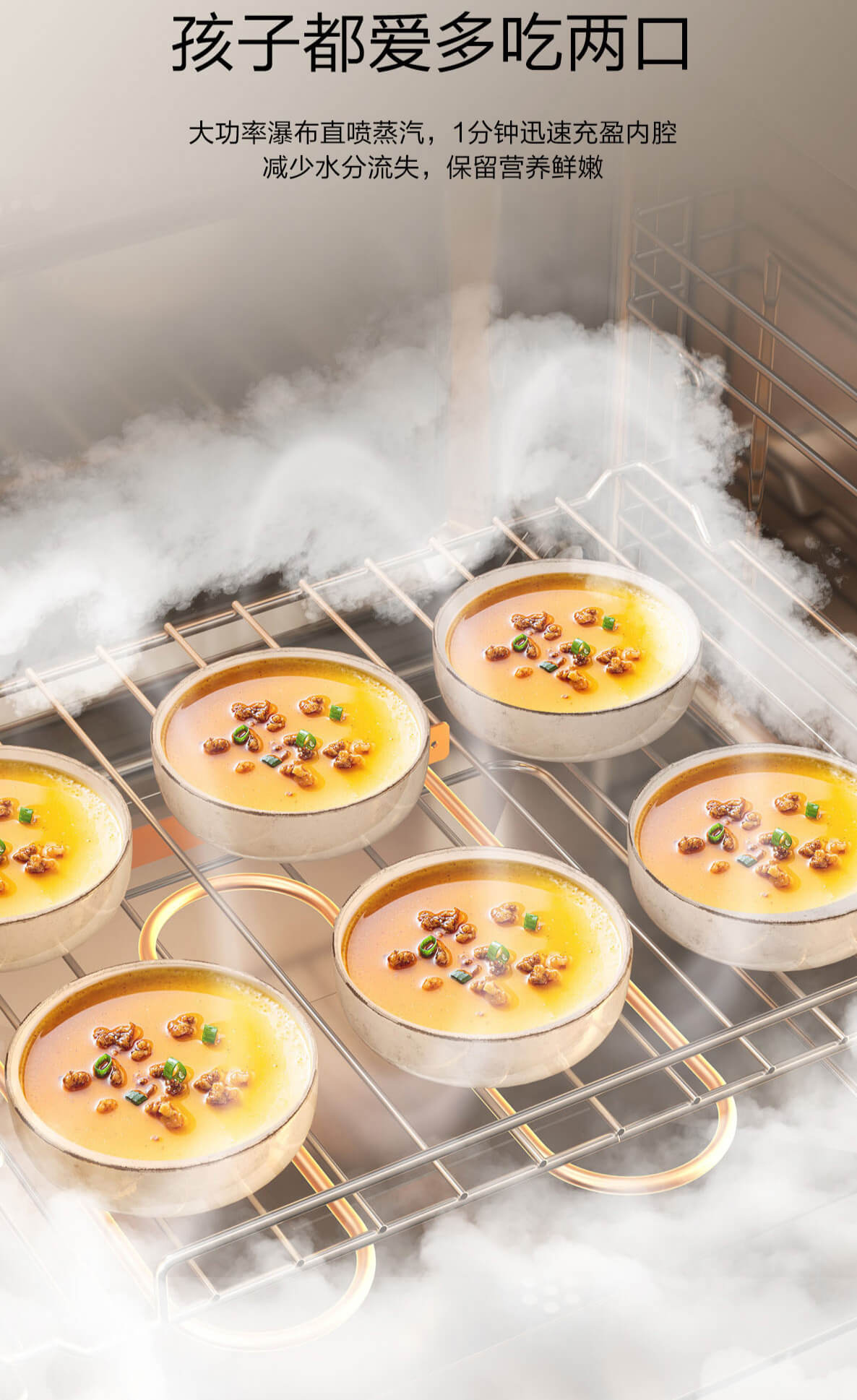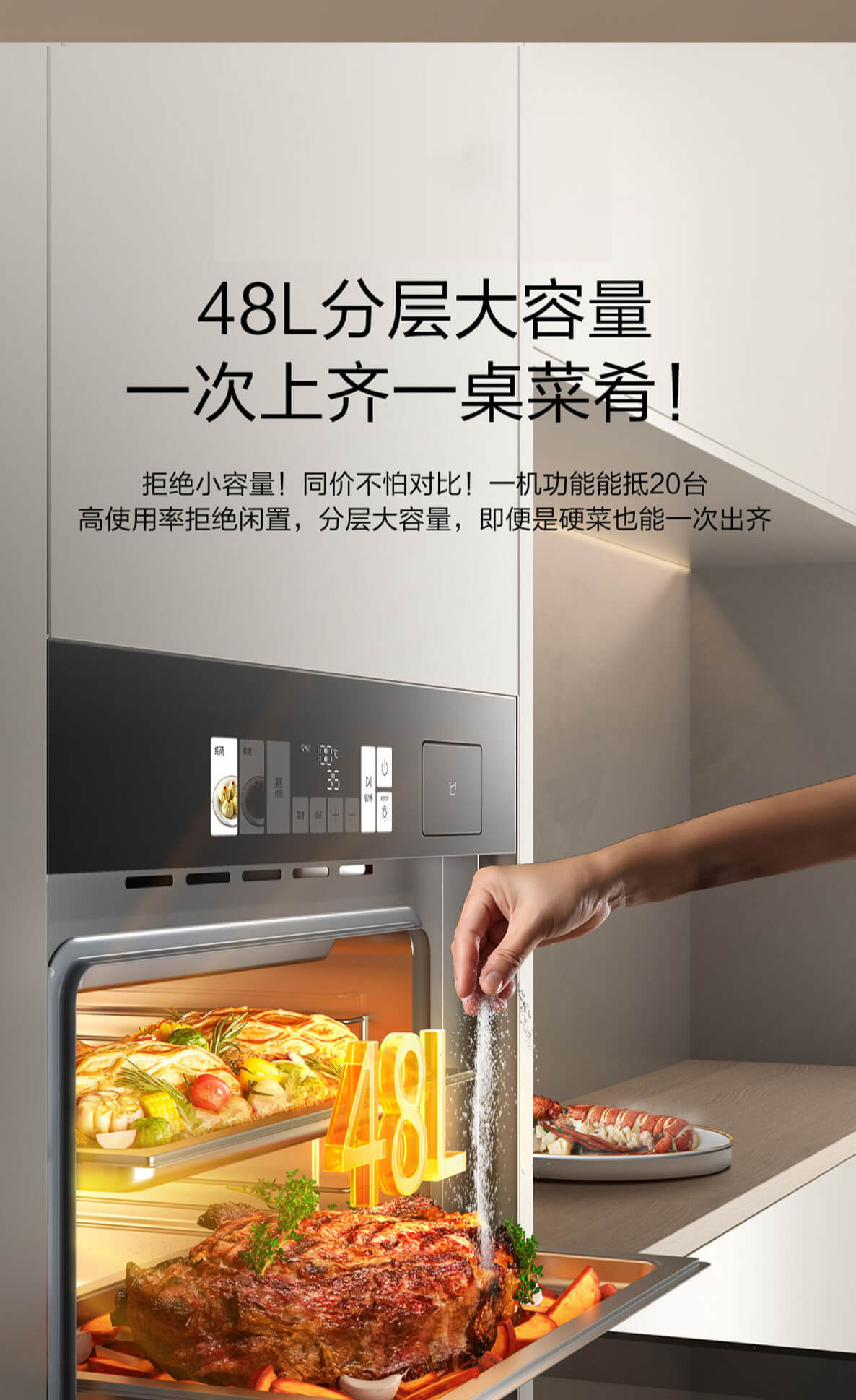靈犀炫彩大屏,48L大容量,十二大專業(yè)蒸烤模式,上下雙管烤,直噴瀑布蒸汽,全304食品級(jí)不銹鋼,一鍵高溫殺菌