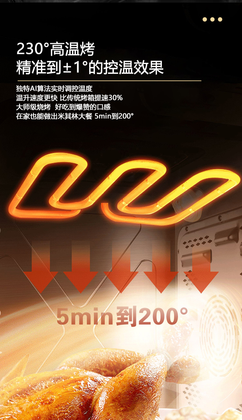 蒸烤同步|1050Pa風(fēng)壓|智能變頻電機(jī)|揮手智控|曲面滑體無縫風(fēng)道|無縫瓷膜內(nèi)膽|一鍵熱融清洗|5 0kW大火力| 27m3 min巡航風(fēng)量| 智能預(yù)約功能