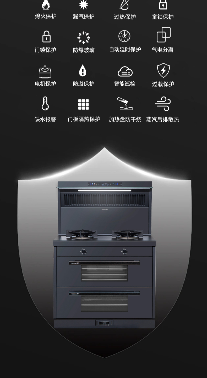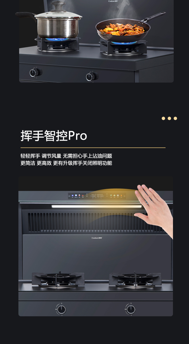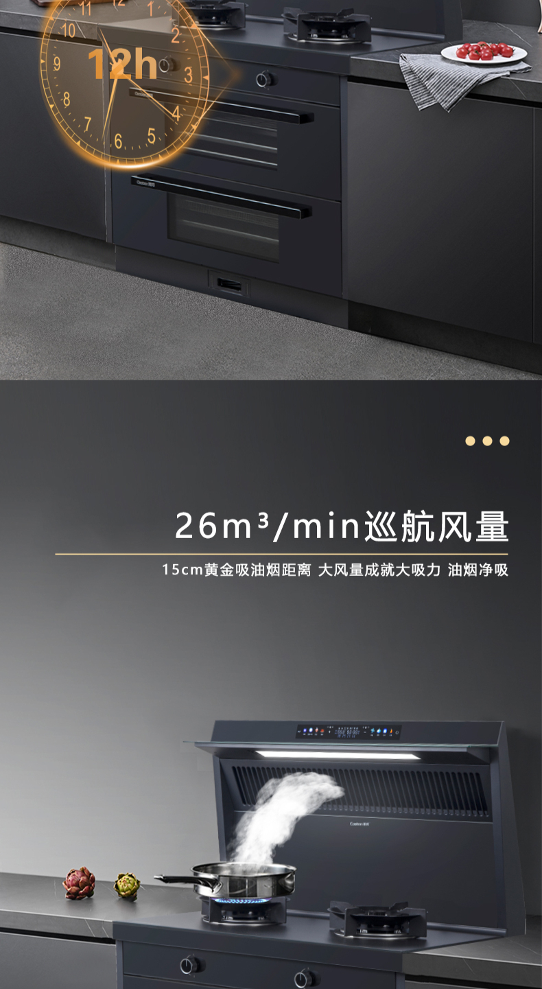 26方巡航風(fēng)量,上蒸下烤新體驗,Cooking2 0智能彩屏,智能揮手感應(yīng)Pro,雙灶定時熄火,碳素微晶面板,全新自清洗,十六大安全保護
