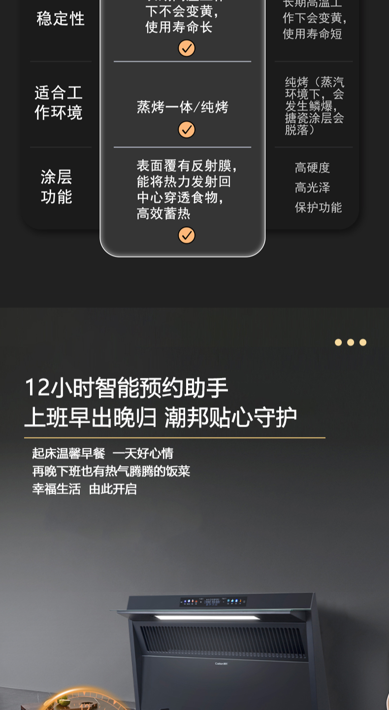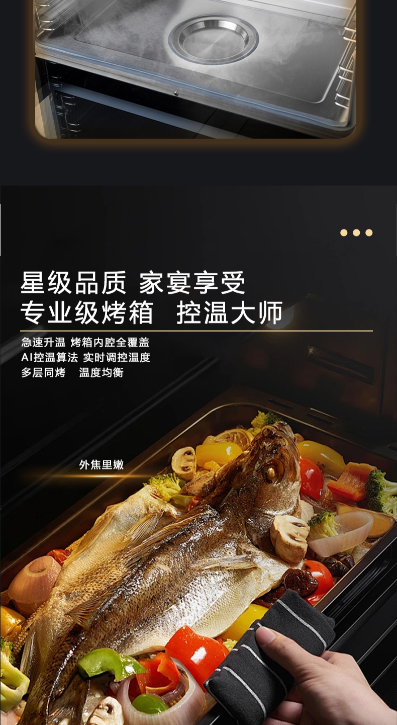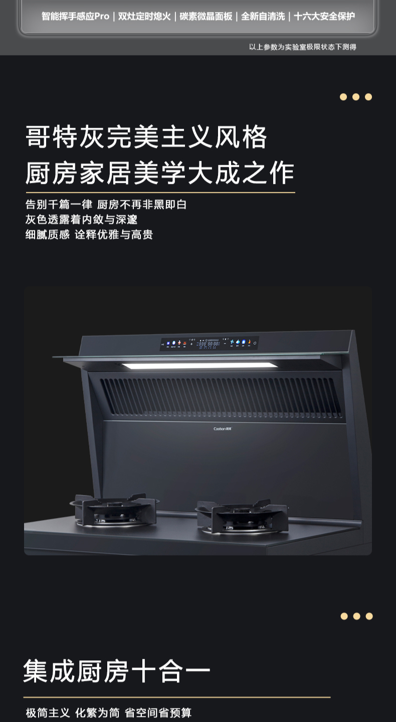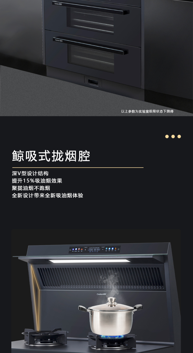26方巡航風(fēng)量,上蒸下烤新體驗,Cooking2 0智能彩屏,智能揮手感應(yīng)Pro,雙灶定時熄火,碳素微晶面板,全新自清洗,十六大安全保護