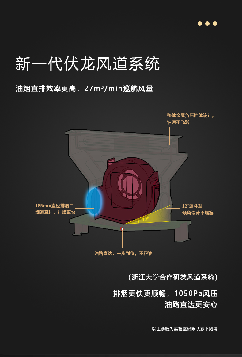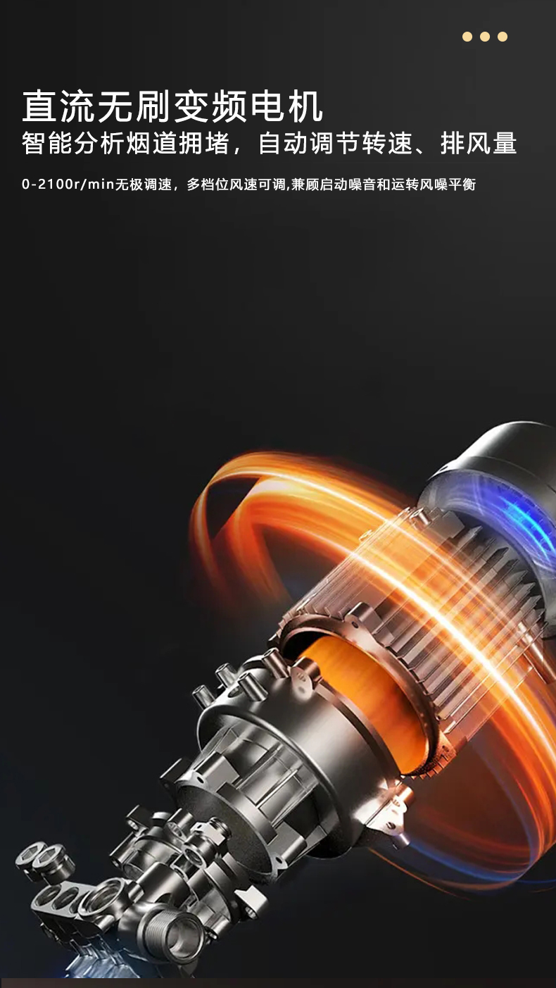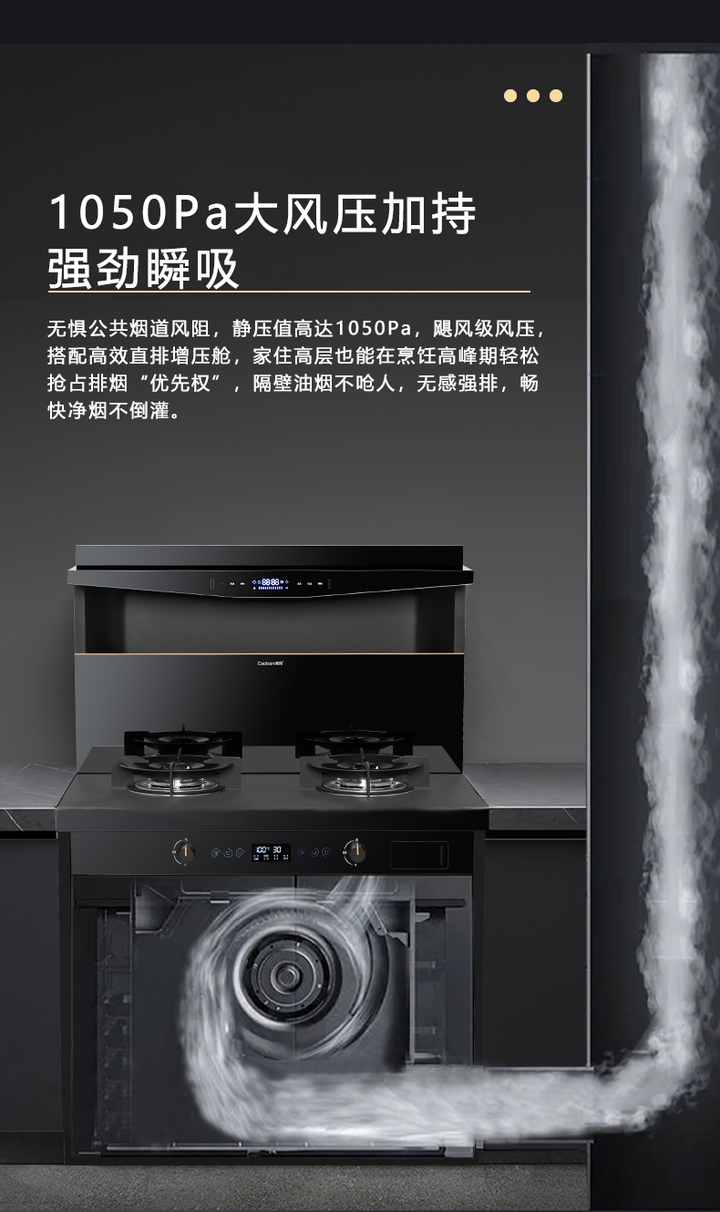 1050Pa風(fēng)壓,智能變頻電機(jī),揮手智控,曲面滑體無縫風(fēng)道,一體瓷膜內(nèi)膽,一鍵熱融清洗,5kW大火力