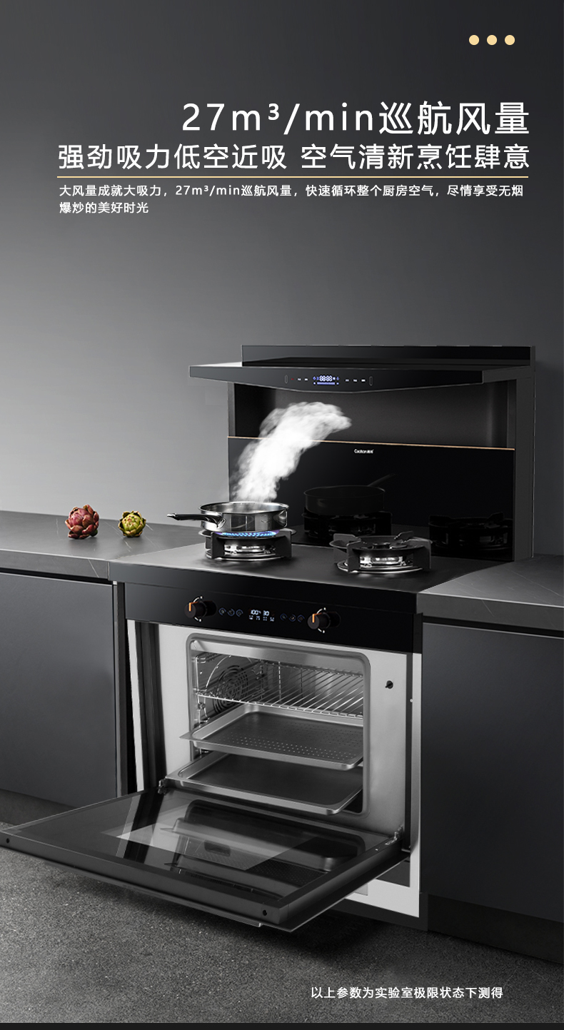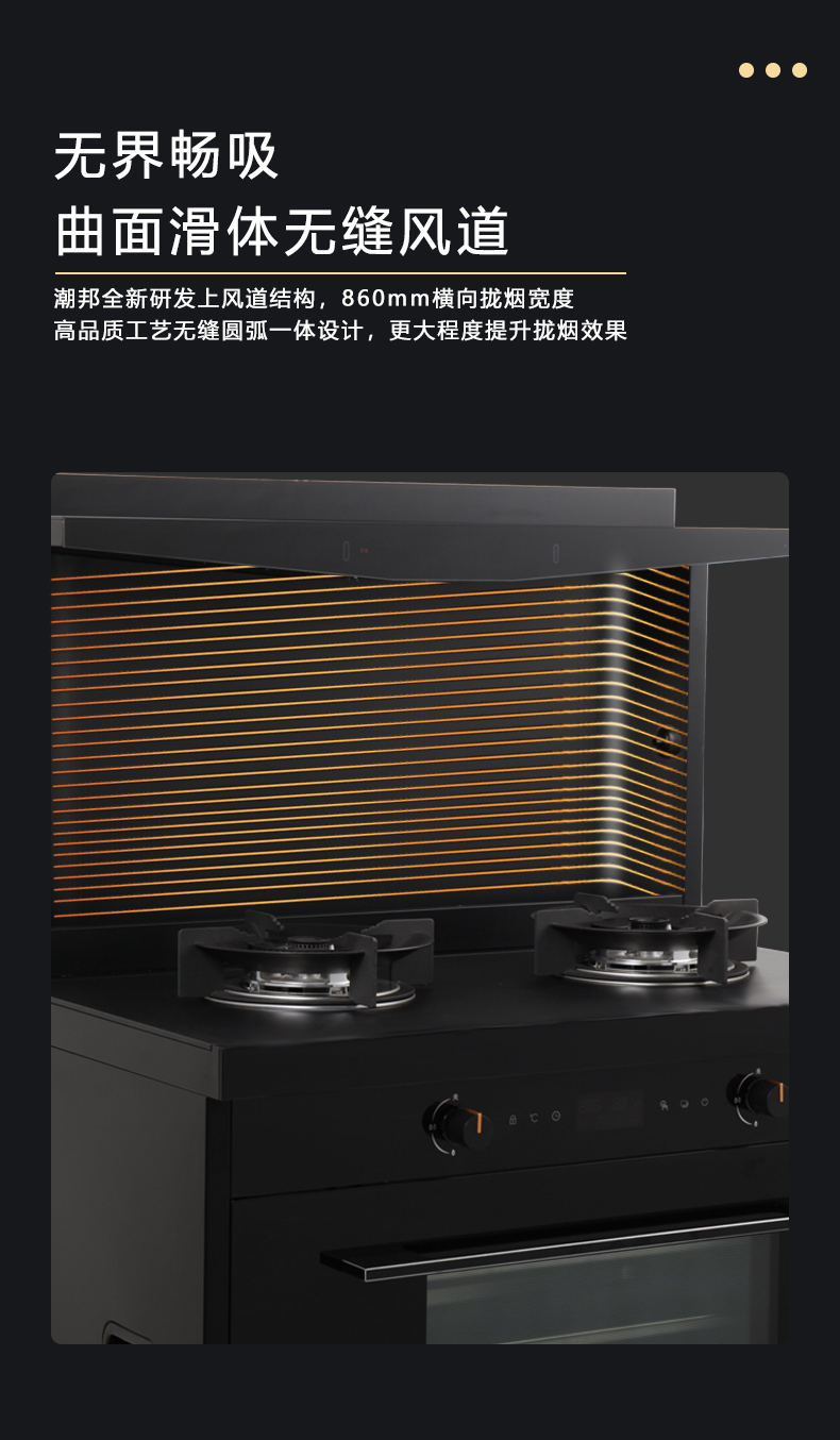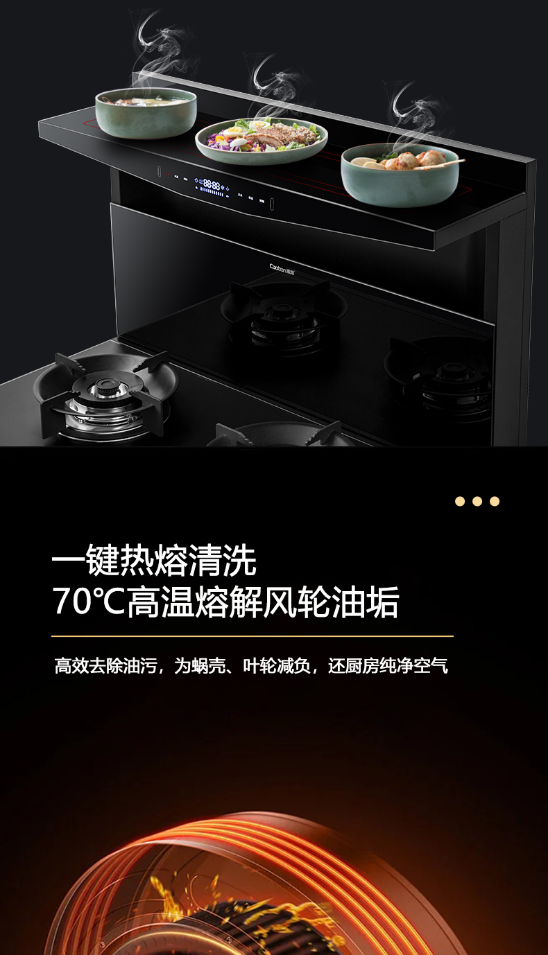 1050Pa風(fēng)壓,智能變頻電機(jī),揮手智控,曲面滑體無縫風(fēng)道,一體瓷膜內(nèi)膽,一鍵熱融清洗,5kW大火力