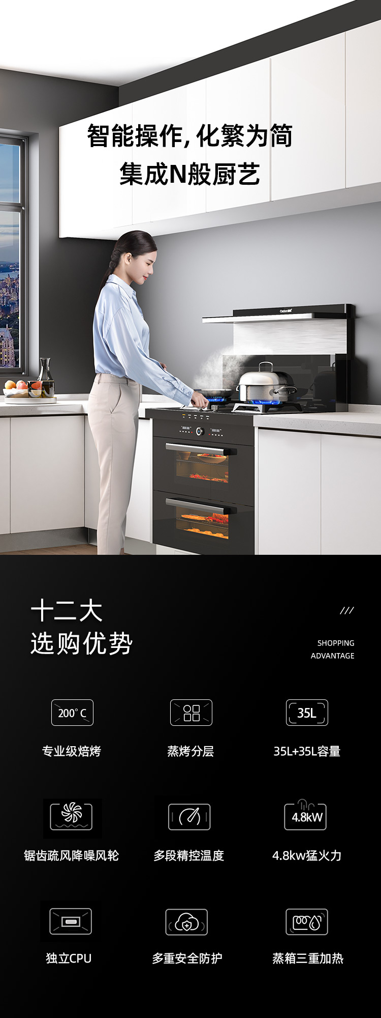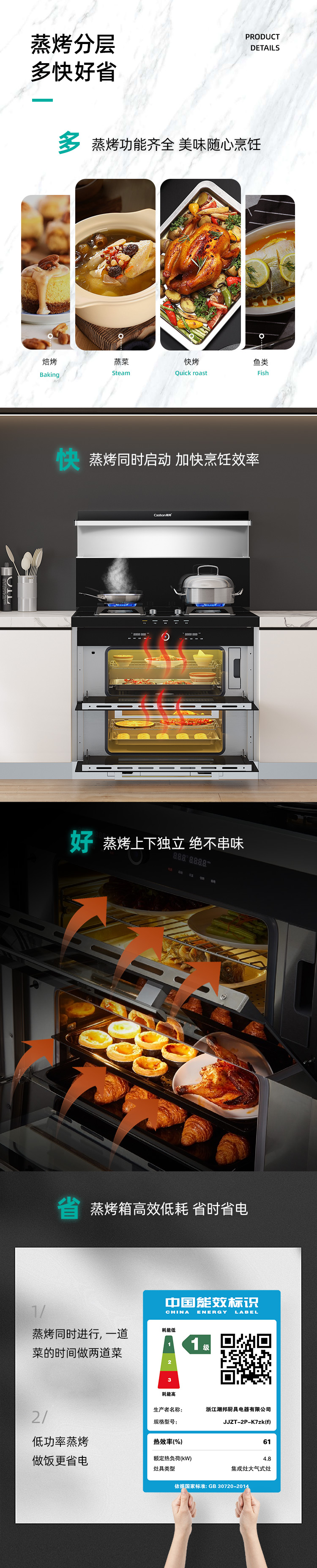 蒸烤分層集成灶,邊蒸邊烤,美味加倍,引領(lǐng)蒸烤分層新時(shí)代。
