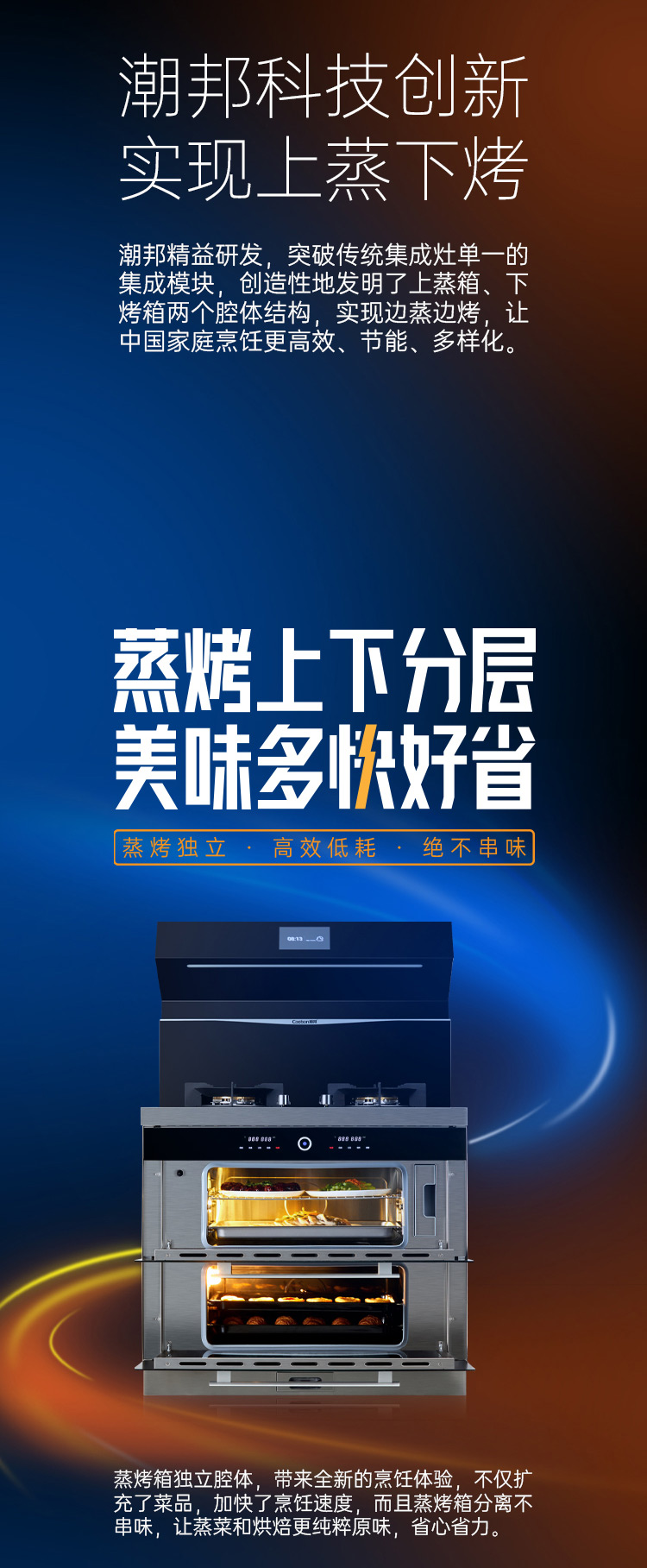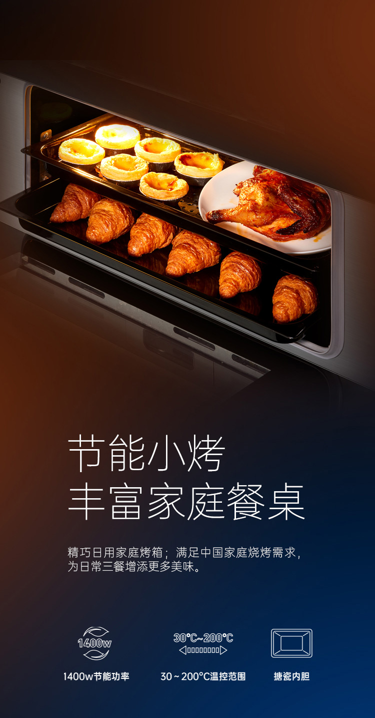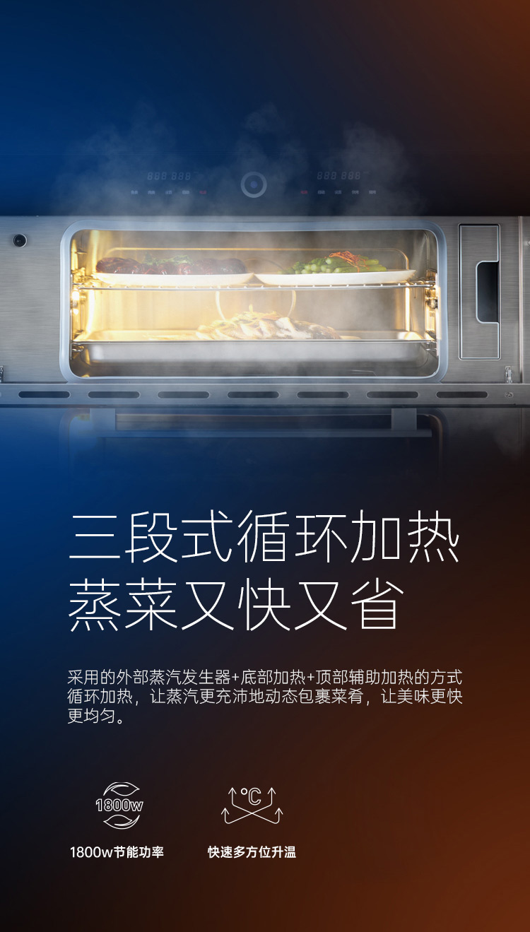 上蒸箱、下烤箱,實(shí)現(xiàn)邊蒸邊烤。更高效,更節(jié)能。